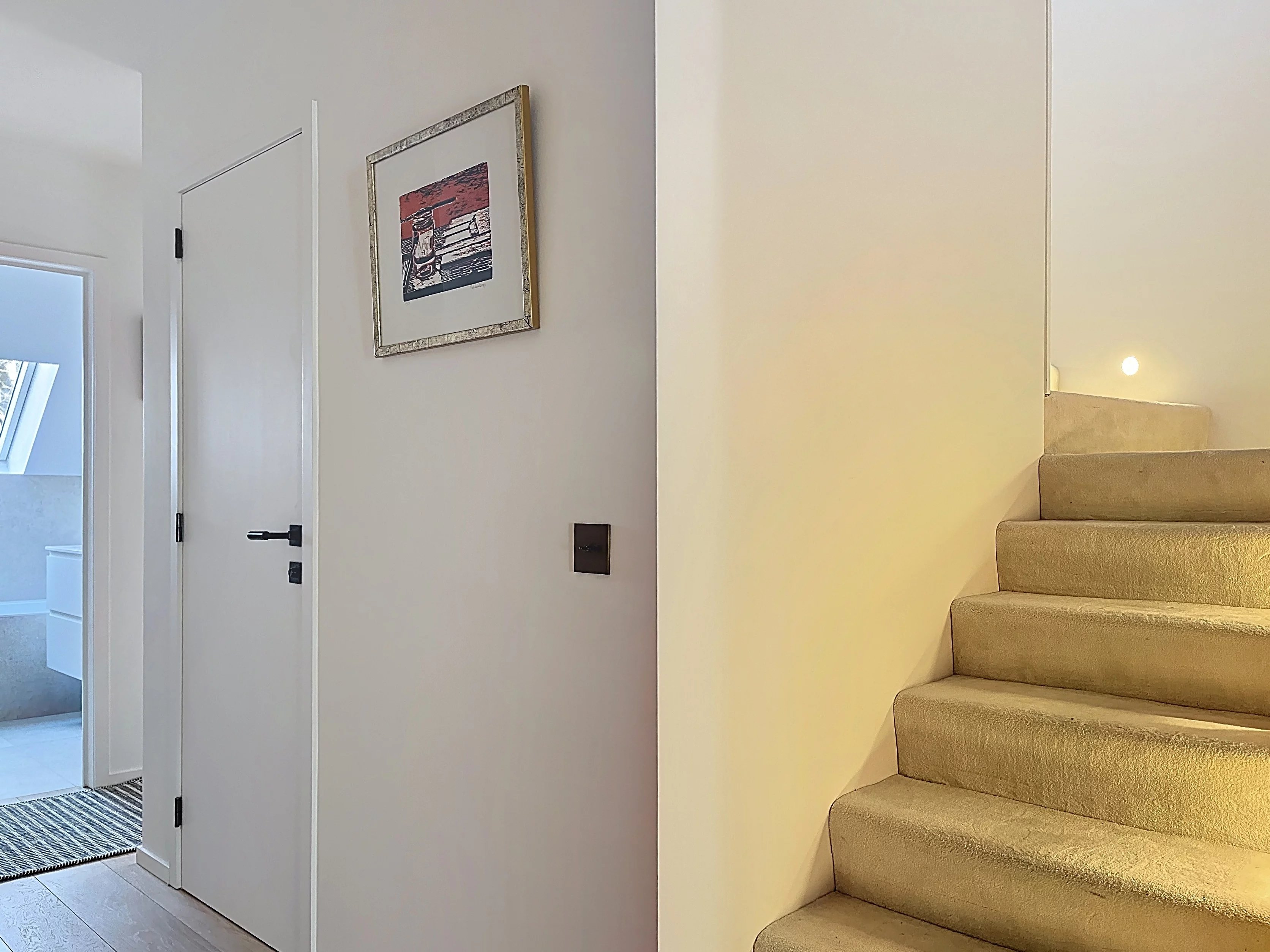 Situé à proximité du Fort-Jaco, découvrez ce superbe penthouse duplex de 235m2 (selon PEB). Le hall d'entrée, avec vestiaire et toilette invité, vous mène vers le lumineux séjour avec feu ouvert. Il dispose de deux terrasse, l'une au Sud, l'autre à l'Ouest, permettant de profiter d'une belle luminosité toute la journée. La cuisine avec ilot central et équipée avec des électros Gaggenau dispose d'un coin déjeuner. Le hall de nuit dessert une première chambre disposant d'une terrasse avec salle de bains/douche et toilette. Une deuxième chambre secondaire, aussi avec terrasse, dispose d'une accès à une salle de bains séparée. Une troisième chambre secondaire peut servir du bureau. Enfin, une buanderie équipée se trouve à cet étage. A l'étage supérieur, la grande chambre master dispose d'un walk-in dressing, d'une salle de bains/douche avec toilette séparée et d'une terrasse. Garage intérieur pour deux voitures, une cave et parking invité l'extérieur. Le bien peut être loué meublé ou non meublé. Provision de charges de 400€/mois pour les charges communes. PEB E Disponible immédiatement!