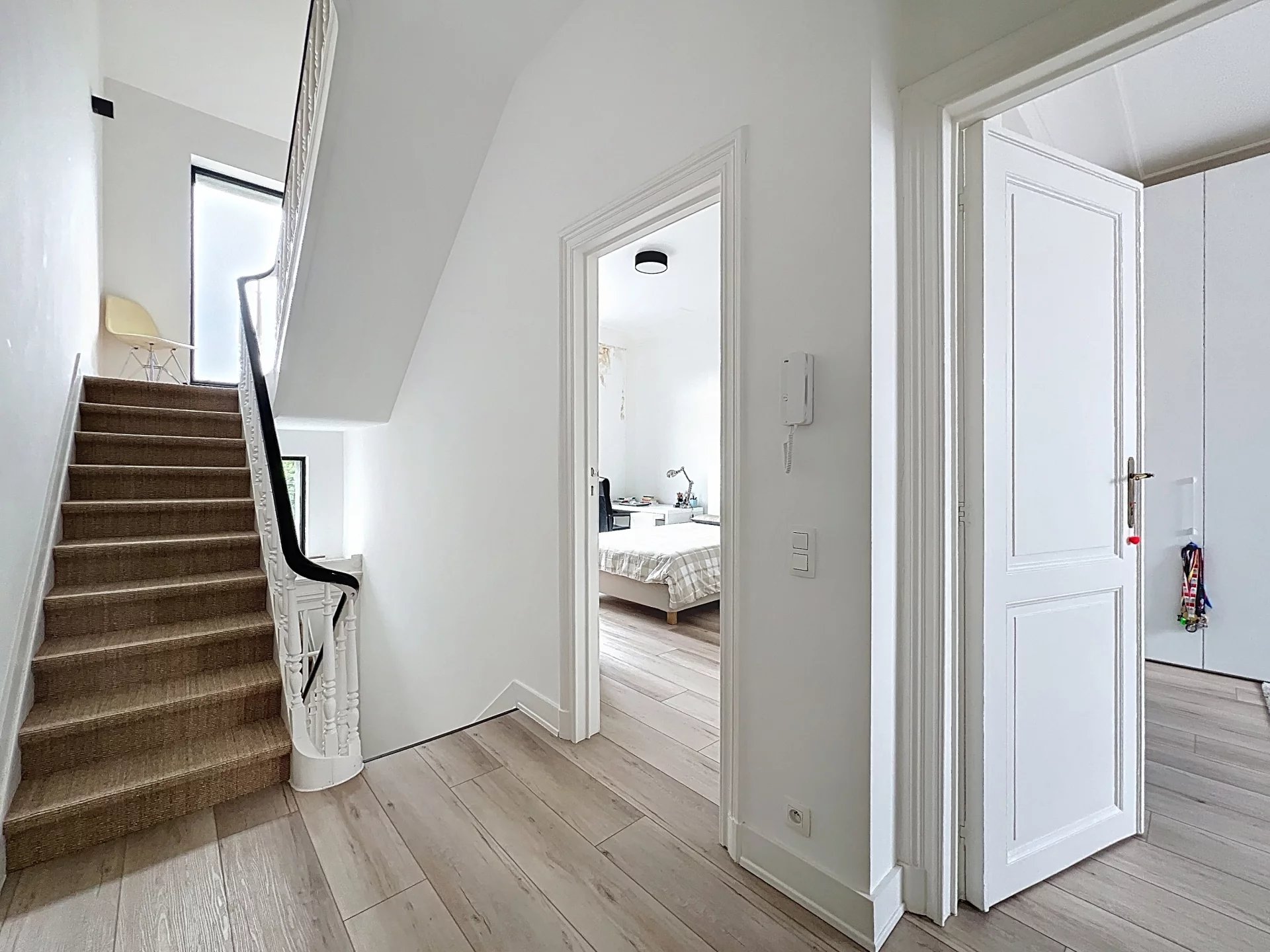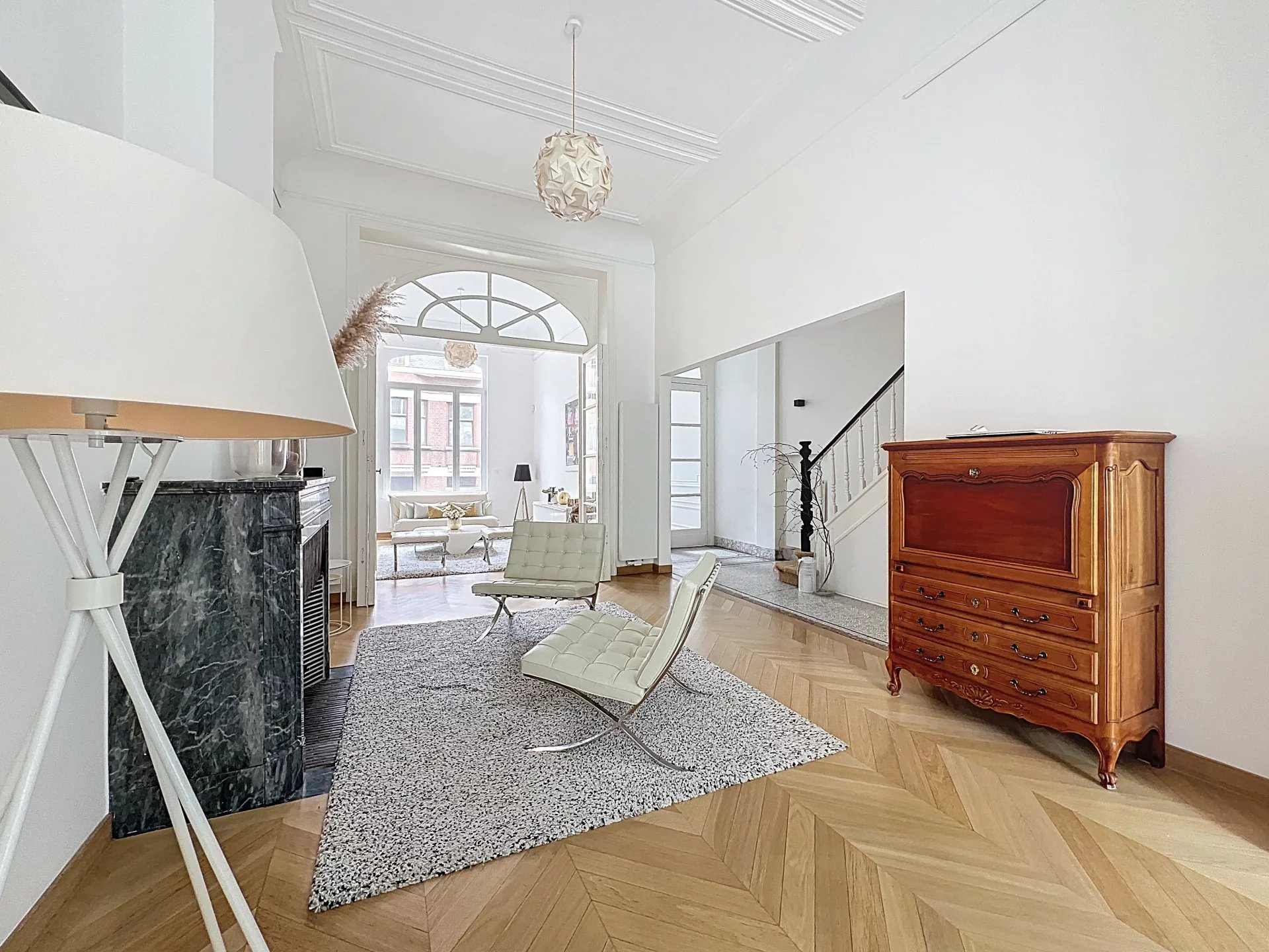 Barnes vous propose en exclusivité une maison située à deux pas de la Place Brugmann et de l'Avenue Lepoutre. La maison datant de 1924 a été intégralement rénovée et se compose de la manière suivante: Au rez-de-chaussée, un double living, une salle à manger, une cuisine avec un ilot central et un office donnant sur un jolie jardin. Au demi étage un espace vestiaire et toilette invités. A l'étage la master bedroom avec son dressing et sa salle de bains en suite, et une grand pièce actuellement occupé en salon tv mais pouvant servir de seconde chambre. Au second étage deux chambres dont une avec une grande terrasse, et une salle de bains. Enfin au dernier étage deux chambres dont une avec mezzanine, et une salle de bains. Au rez de jardin, une salle polyvalente avec salle de bains (chambre pour une nounou, salle de jeux, salle de sport ...) avec un accès à une cour anglaise et au jardin. Une cave à vin, une buanderie, et un grand espace pour les vélos. Divers: Peb D, proche de toutes commodités. Venez découvrir cette belle maison coup de coeur!